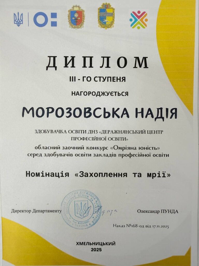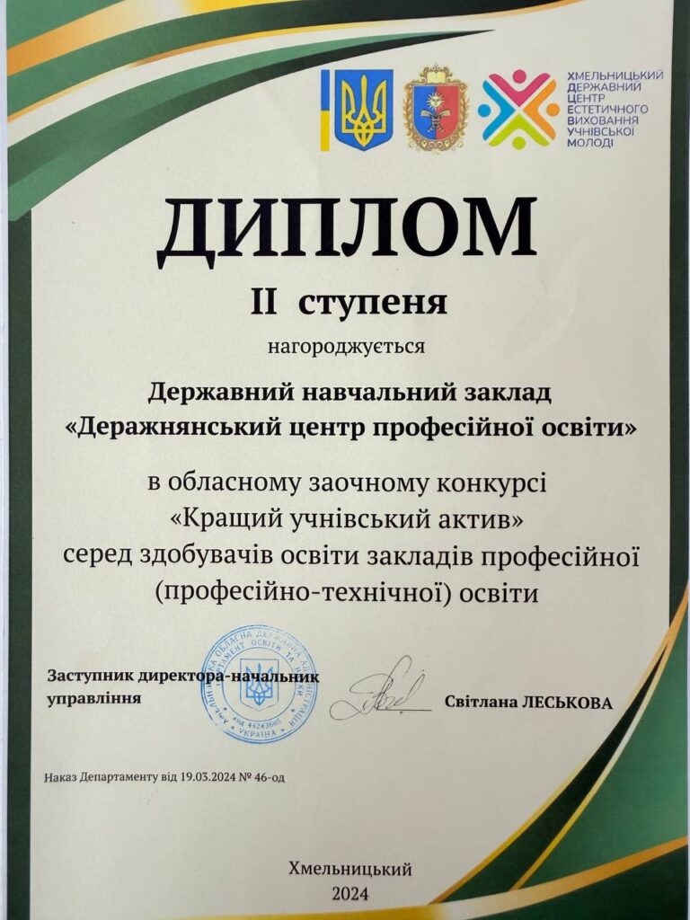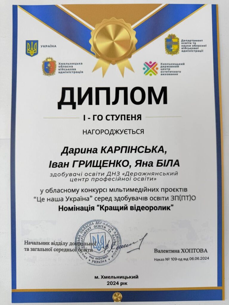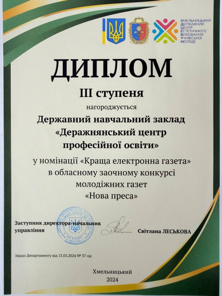 Радісно ділимося результатами обласного заочного конкурсу молодіжних медіа серед закладів професійної та фахової передвищої освіти. Державний навчальний заклад «Деражнянський центр професійної освіти» знову на висоті!